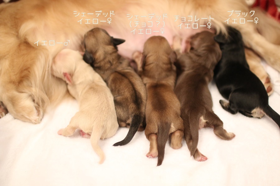 前回は男の子ばっかりだったけど、今回は男の子1頭、女の子4頭の女の子優勢です。